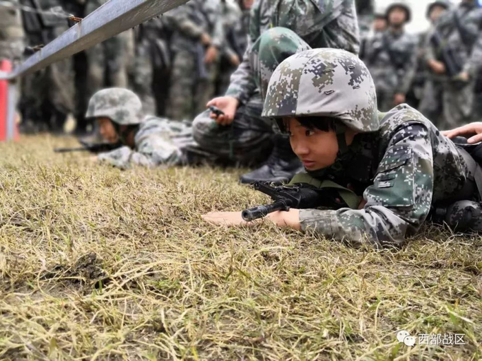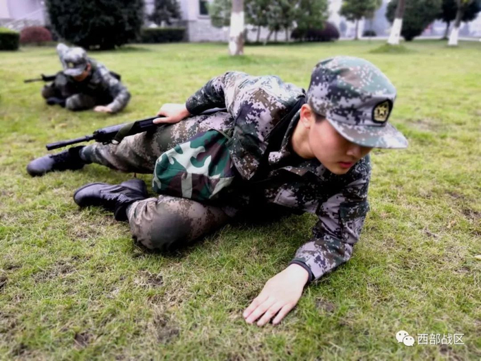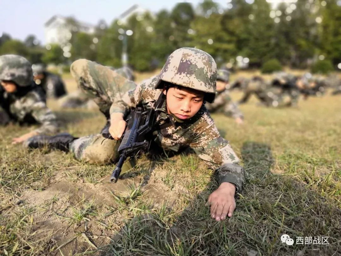 闻令即动,训练场上女兵们个个奋勇当先。班长口令一出,低姿匍匐、跃进向前、卧倒出枪、瞄准击发……刚劲中她们少了几分娇媚,多了些军人冲锋在前的铁血担当。柔情中她们少了几分瘦弱,却多了些保家卫国的青春豪迈。