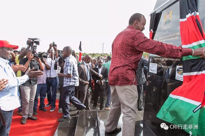 ▲肯尼亚总统乌胡鲁亲自为项目揭牌。