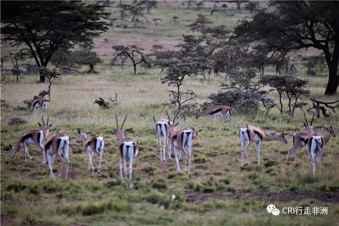 我们在离开采访地点时,突然发现,离Saiyalel家水塘不远的地方,栖息着很多野生动物,包括斑马、角马、长颈鹿、大象等。这些动物都不在马赛马拉野生动物保护区的围栏内。