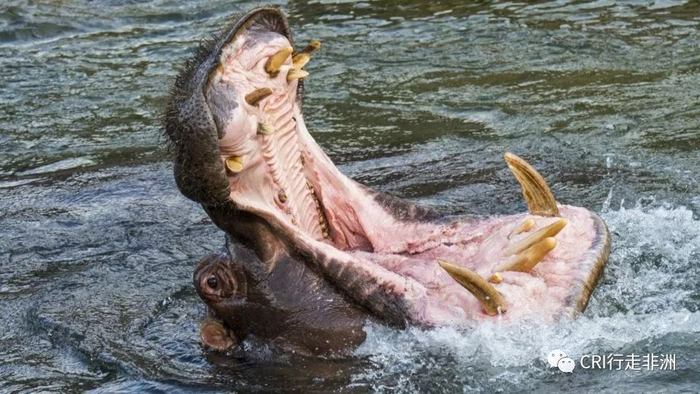 ▲卧伏在水底的巨鳄对角马发动突然袭击。