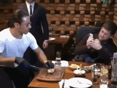 撒盐哥在车臣领导人面前舞刀 这样喂他吃肉(视频)