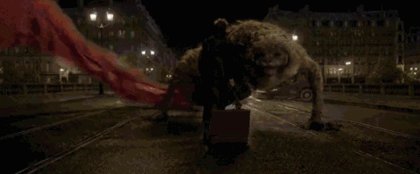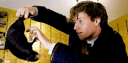 但凶猛彪悍的驺吾,在男主角纽特的魔杖(确定不是逗猫棒吗?)安抚之下,居然秒变大眼萌喵......