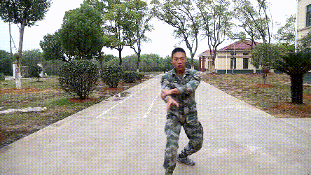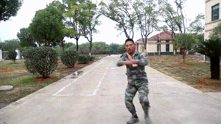 用途:肘击头,膝顶档腹。