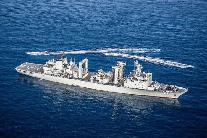 它的补给接收装置采用国际标准,具有自动化程度高、操作简便、适配性强、补给速度快、保障效率高等特点,可通过横向、纵向、垂直和靠帮等多种方式对舰艇编队实施补给作业,具备两舷三向四站同时补给能力。