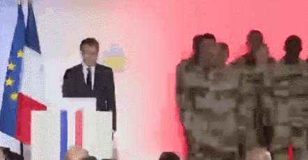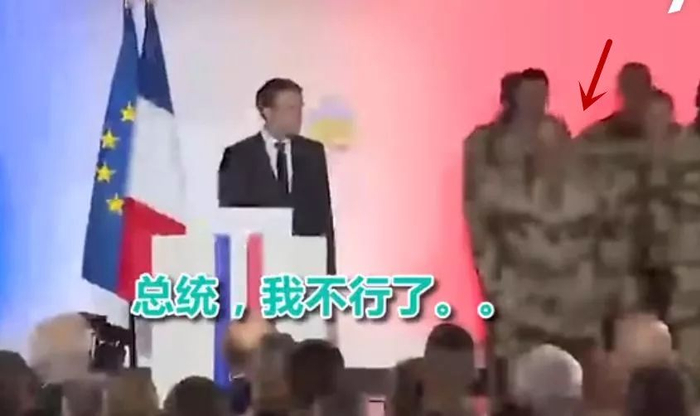 马克龙的演讲被官推全程直播,士兵晕倒的这一幕也被直播出去了……