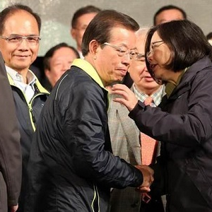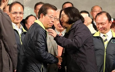在谢系都已服膺蔡英文(前右)的情形下,蔡英文真能拔了谢长廷(前左)的“驻日代表”职务?(图片来自台媒)