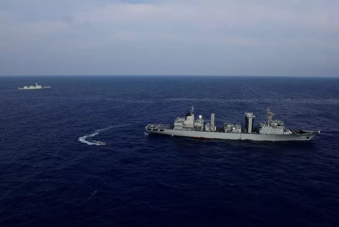 ▲邯郸舰采取伴随护航和随船护卫相结合的方式