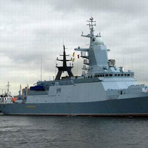 这艘护卫舰长104.5米,宽13米,满载排水量2200吨,全速最高可达27节,配备“铀”反舰导弹、“多面堡”防空系统、AK-630M和A-190舰炮以及“纸包”-NK反潜系统。