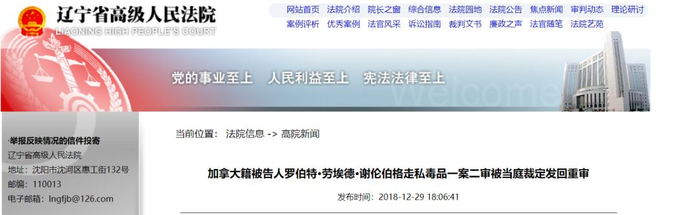 2018年12月29日,辽宁省高级人民法院对加拿大籍被告人罗伯特•劳埃德•谢伦伯格(ROBERT LLOYD SCHELLENBERG)走私毒品一案依法进行二审公开开庭审理。辽宁省人民检察院出庭检察员提出一审法院认定被告人为从犯和犯罪未遂并从轻处罚明显不当。辽宁省高级人民法院当庭裁定将案件发回原审法院重审。