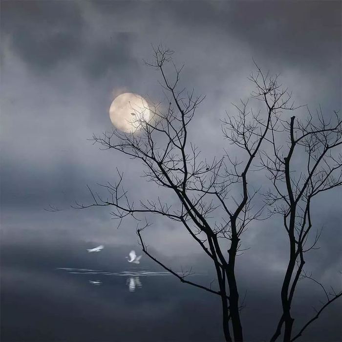 唯有弯月高悬,照亮寒冷。北斗七星,盛着银辉,泼洒在万家团圆的屋顶上。