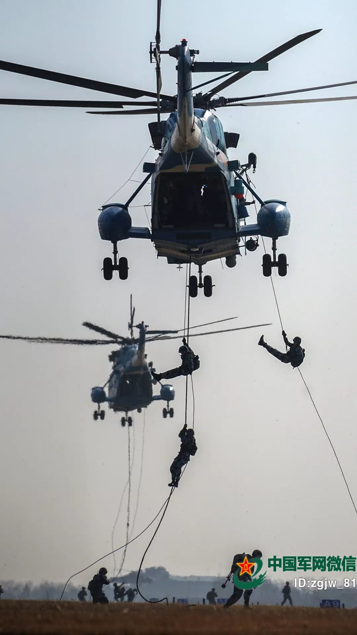 训练中,他们采取多机输送、多路索降的方式,以最快的速度把特战队员输送到位,有效提高了部队索降作战能力。