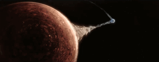 《流浪地球》的画面简直壮观到令人窒息,首次呈现给观众们行星之间因为引力互相吸引的天体级别的壮观时刻。