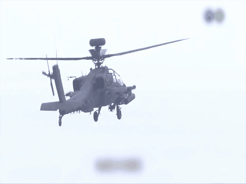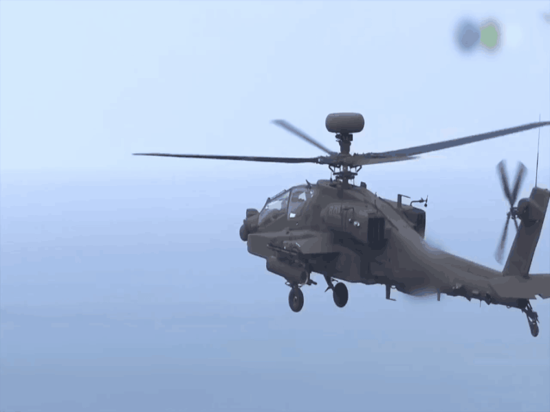 台军AH-64E武直起飞、拆装主旋翼及“长弓”火控雷达动态图。