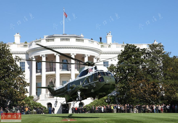 图为美国总统奥巴马准备搭乘“白鹰”起飞。