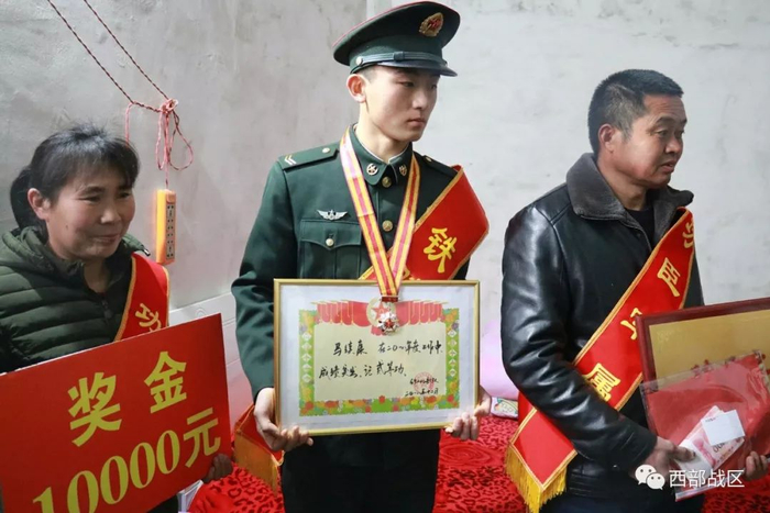 千里送奖章,军地共见证。春节刚过,河南省清丰县瓦屋镇马家村又迎来了一件喜事。近日,新疆军区某装甲团上等兵马续康,在该团主任曹伟伟一行人的陪同下,带上二等功奖章和奖金返乡探望亲属。