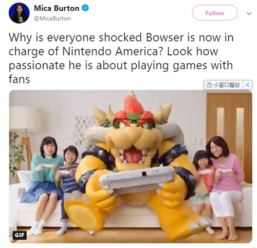 网友Mica Burton:为什么所有人都在惊讶鲍瑟(库巴)接管任天堂美国区呢?看看他在多么热情地跟粉丝一起玩游戏呀