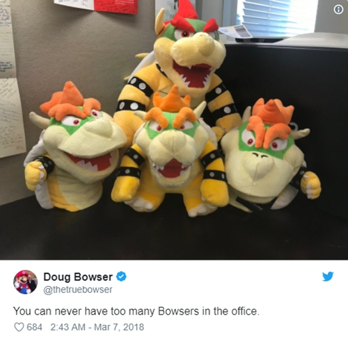 但事实上,接管任天堂的并非游戏中的库巴(Bowser),而是一位与库巴同名的人,名叫道格·鲍瑟(Doug Bowser)。