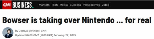【环球网报道 记者 崔天也】“‘库巴’接管任天堂…是真的!”美国有线电视新闻网(CNN)22日这样写道。