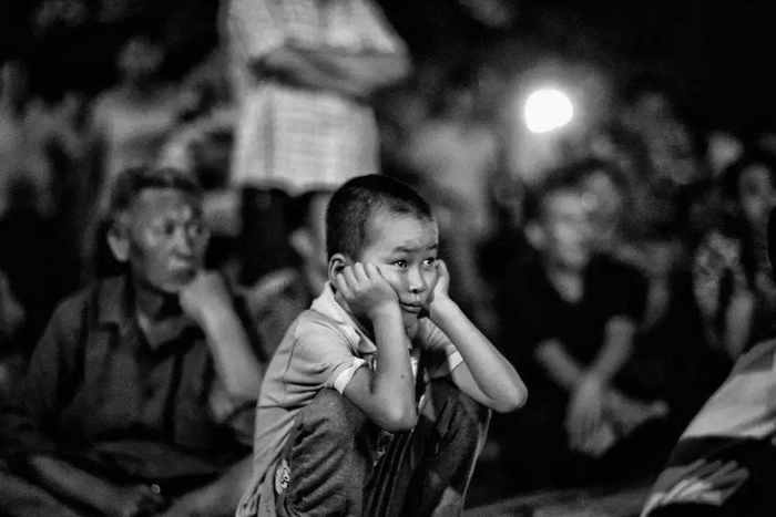 我扛着小椅凳独自去了电影院,电影已经开始,人必然不多。不少人完全是闲逛到此、顺便看两眼的架式——垮着腰手插在裤兜,或者一只手夹根烟,连凳子都不坐,就那么游手好闲地立在那儿。因为人少,也不再一排排按规矩坐在水泥凳上,除了前两排,后面的人都上前站着,围着舞台凌乱地站成一个半圆。我来到舞台侧面,在几乎与银幕呈120度角的一个空处放下小椅凳,然后摇了摇凳子,保证让它的四条腿在一踩半脚坑的碱土地面上扎稳,这就坐了上去。家里原本没有这种儿童靠背椅凳,我与妹妹经常为争抢同一只矮凳而打闹,父亲索性做了两把靠背椅,漆成深褐色,为了不搞混,靠背样式稍有不同,从此我与妹妹一人一把,家里和平了许多。我非常珍爱我的这把椅子,不仅不允许妹妹碰,连爸爸妈妈坐上去也会让我感到不安,只要在家,即使不用它,我也会用眼睛紧紧盯着它。