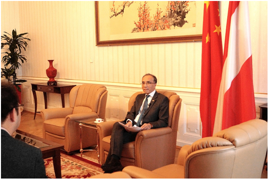 中国驻奥地利大使馆李晓驷大使接受《环球时报》记者采访