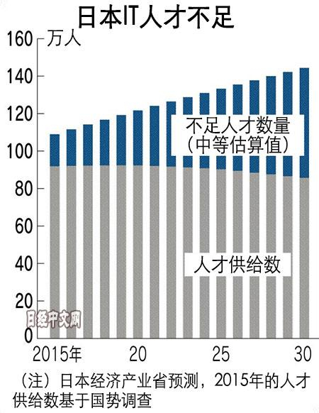 其实,日本对IT人才不足的危机感早已有之。日本政府在2016年的产业竞争力会议上,就把编程进入教科书必修课,写进了相关发展战略中。这一举动的依据,正是2016年日本经济产业省公布的数据。这项数据显示,如果IT市场保持中等水平发展,到2020年,日本国内的IT人才短缺规模将达到约29万人,到2030年将达到59万人。