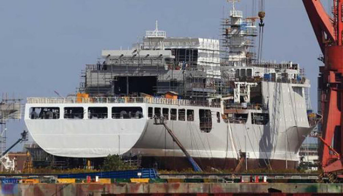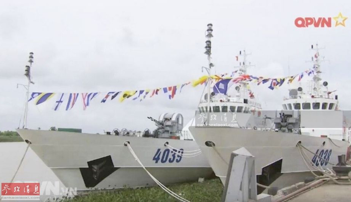 据悉,2014年越十三届国会第7次会议通过72号议决,同意海警部队新建7艘舰船,此次交付的包括2艘TT-400高速巡逻艇(CSB4038、CSB4039)和1艘H222型多功能海上油料补给运输船(CSB7011),其中7011交付海警三区、4038交付海警二区、4039交付海警四区。图为新入列的2艘海警巡逻艇,海军版本是TT-400-TP,意为400吨级巡逻炮艇。