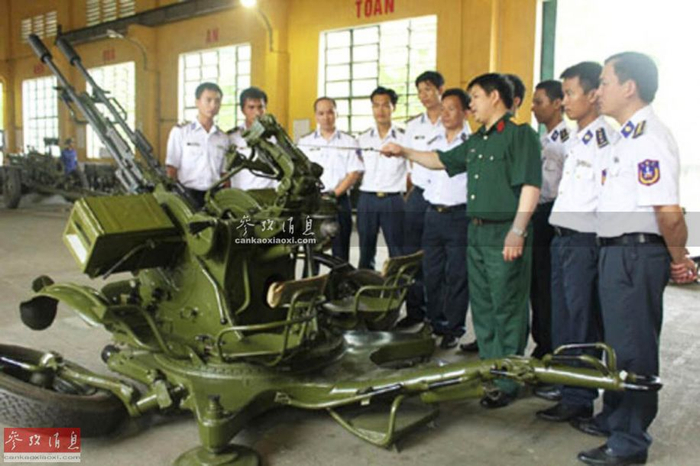而今,越军将这种服役已达半个世纪的老古董配备在海警船上也算是“废物利用”。据悉,为提升部队战力,越南海警早在2014年就启动了换装ZU-23-2高射炮的相关训练。除TT-400巡逻艇外,越南DN-2000海警船也安装了该型炮,其不遗余力强化海上军力的劲头由此一目了然。图为越南军械局人员向海警官兵讲解ZU-23-2双管高射炮性能。
