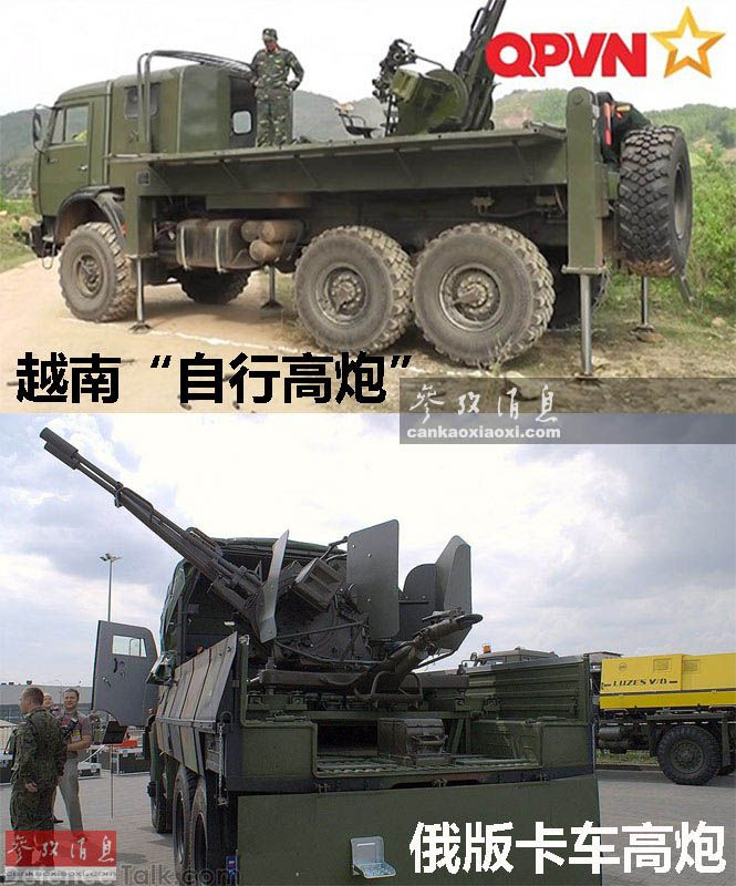 ZU-23-2是苏联的一种古董级双管 23 毫米高射炮,有效射程2500米,最大射高5100米,但直射距离只有900米。该炮设计、试制于上世纪50 年代,60 年代初定型和投入生产,主要装备苏军摩托化步兵师和坦克师属高射炮团及伞兵团高射炮连。图为越军将ZU-23-2双管高射炮加装在俄制Kamaz-43118型军用卡车上。