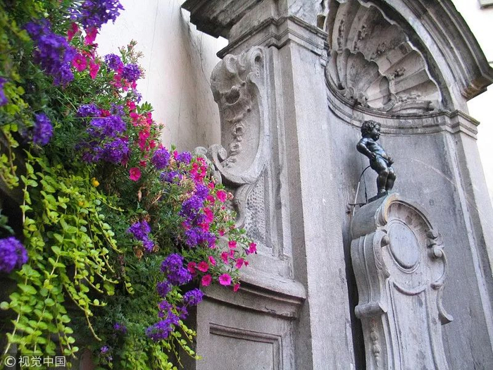 ▲位于比利时布鲁塞尔的“撒尿小童”雕像。(视觉中国)