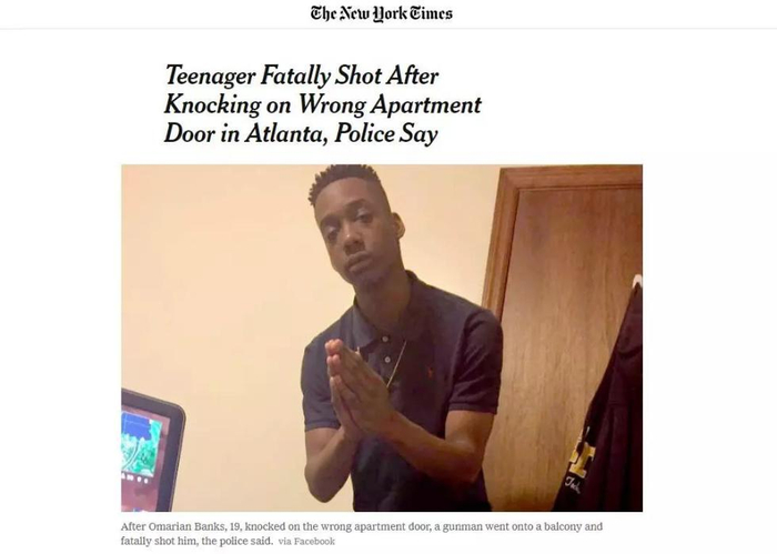 少年 #OmarianBanks 因为错按了门铃被射杀。