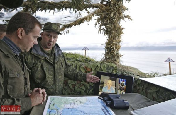 资料图片:梅德韦杰夫视察“南千岛群岛”。