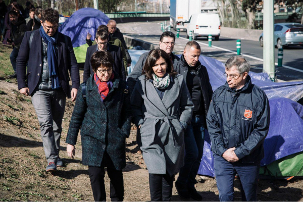 巴黎市长安娜·伊达尔戈探访十八区难民营。(图:《巴黎人报》)