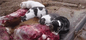 “当它们享用完,满脸血迹的在我身边打呼噜,是令我感到最欣慰的事。”