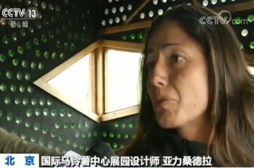 国际马铃薯中心展园设计师 亚力桑德拉: 我们用了200个轮胎,超过6000个玻璃瓶,将玻璃瓶切断,取玻璃瓶底部两两拼接。玻璃瓶可用在墙壁或屋顶上带来美感,又能让房间更亮堂。轮胎能很好吸收地震波,所以我们做的这些房子,结构更牢靠。