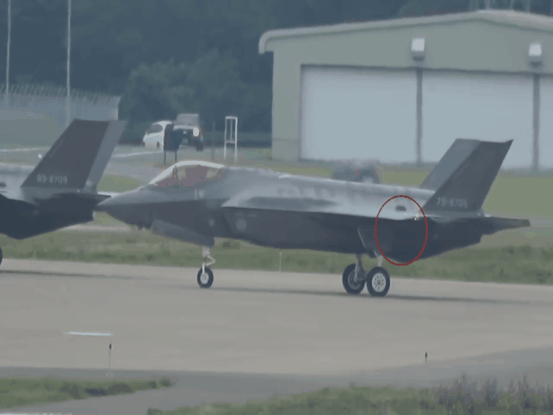 日本空自此次损失的首架F-35A战机(红圈标出其机号79-8705)为“生前”起飞及低空飞行动态图。