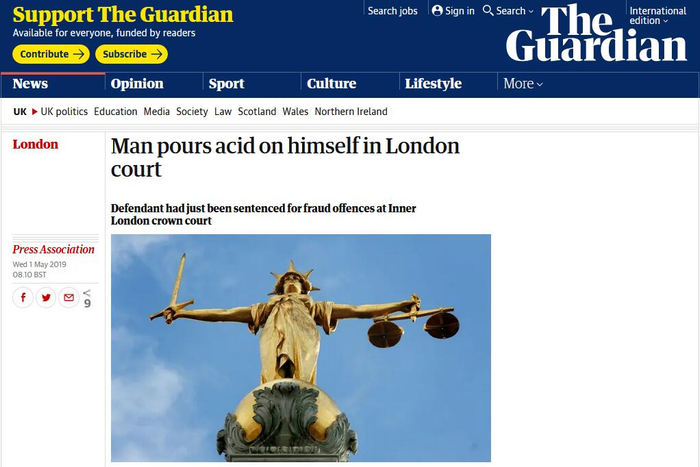 伦敦法庭现“惊人一幕”:被告突然往自己身上泼酸
