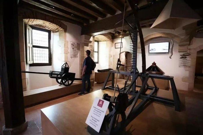 模型厅里,摆放着40件根据达⋅芬奇草图、利用当时材料复原而成的模型,包括降落伞、坦克、机关枪、桥梁等,展示了大师在土木工程、军事、机械、光学、水利甚至航天等方面的超前设计。