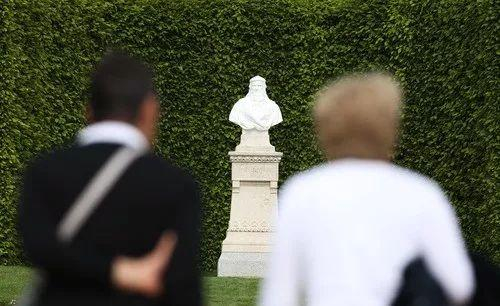 5月1日,在法国昂布瓦斯城堡,游客参观达⋅芬奇胸像。新华社记者高静摄