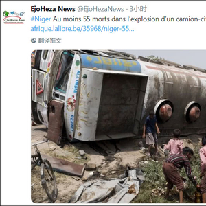 据美联社5月6日报道,西非国家尼日尔当局表示,当地时间5日晚,一辆装满燃料的油罐车在该国首都主要机场附近爆炸,造成至少55人死亡。目击者称,爆炸发生时,一大群人正试图收集油罐车泄露的汽油。