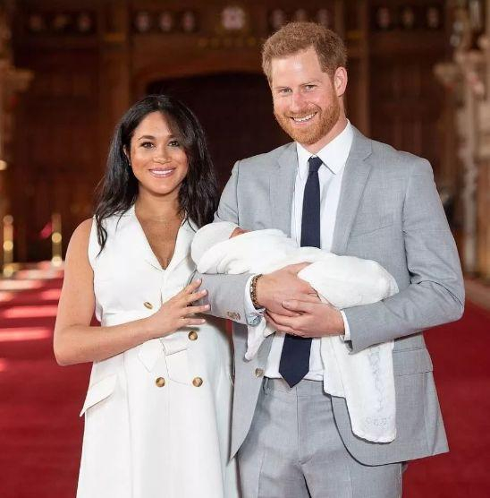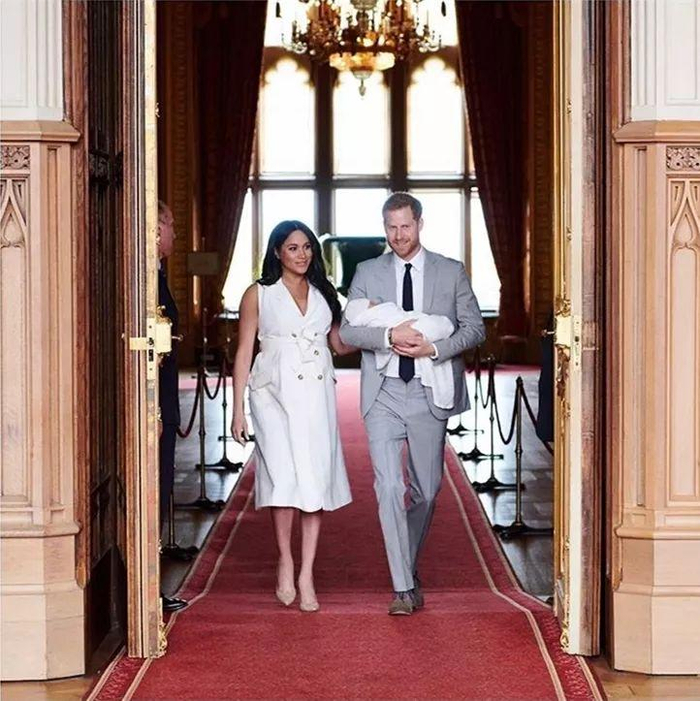 2天后,新生王室宝宝阿奇⋅哈里森⋅蒙巴顿-温莎(Archie Harrison Mountbatten-Windsor )被父母抱出来第一次正式亮相。