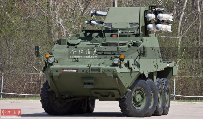 另一种轻量化改装方案是直接在现役的M2步战车上加装防空导弹发射器,无需进行专门改装,就可执行防空作战,例如图中就挂载了AIM-9X“响尾蛇”近距空空导弹的陆基版。
