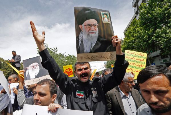 10日,伊朗示威者在德黑兰反美集会上高举最高领袖哈梅内伊的画像。