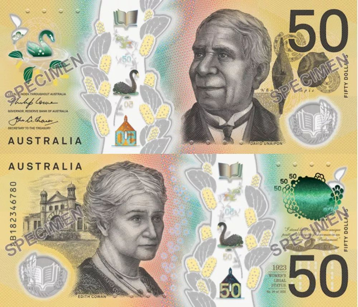 澳大利亚储备银行2018年10月18日正式发行新版50澳元纸币,新版纸币具有新的安全特征,以防止伪造,还有为视觉障碍人士准备的触摸特性。