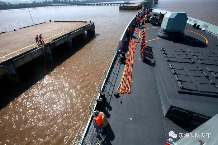 历时26天,总航程5600余海里,5月21日上午,代表中国海军参加东盟防长扩大会海上实兵演习的东部战区海军某驱逐舰支队湘潭舰顺利凯旋,返回浙江舟山某军港码头。