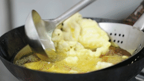 待油温升至8成热时,再次复炸,用勺子不停搅拌,外壳至表面金黄即可捞出沥油。(炸第二遍)
