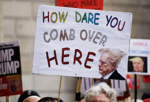 此次抗议的参与人数据称少于去年特朗普访英之时,但是,英国人仍然展现出了他们特别的幽默感。