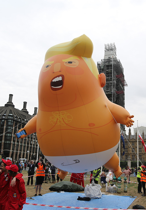 英国《卫报》专栏作家乔纳森·琼斯在5日发表的文章中犀利地指出,类似“特朗普宝宝”气球的抗议行为,其实只能让人们以为,自己拥有比实际情况更多的力量。琼斯写道:“英国人没法摆脱这个可悲的总统。但是,我们可以用无礼的艺术侮辱他。”同样,他也在文章中回顾了英式政治讽刺的传统。