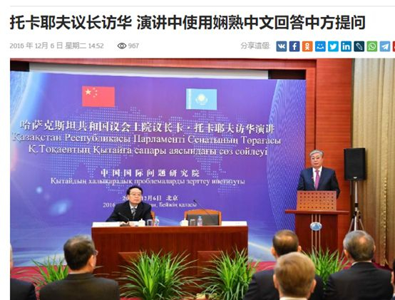 ▲截图为2016年时哈萨克斯坦媒体“哈通社”对于托卡耶夫访华的报道,期间他用流利的中文回答中方的提问
