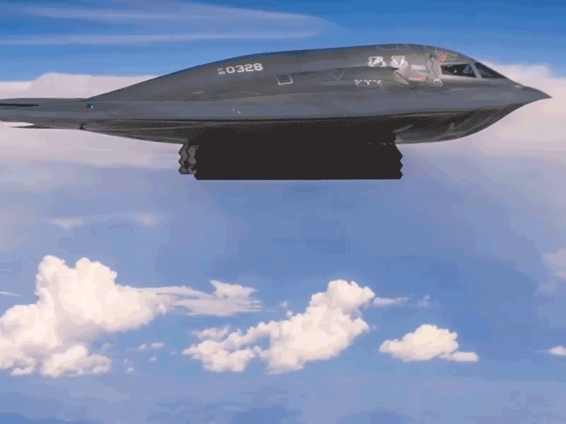 美空军B-2轰炸机投放MOP钻地弹并命中目标动态图。