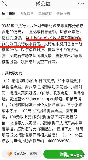 6月29日晚,柯先生告诉南都记者:“今天下午,有个人打电话给我说可以帮我们,问我后续治疗需要多少钱。我不知道要多少钱,他就说定90万。”不过,关于募捐需要收手续费一事,柯先生表示“自己并不知情”。
